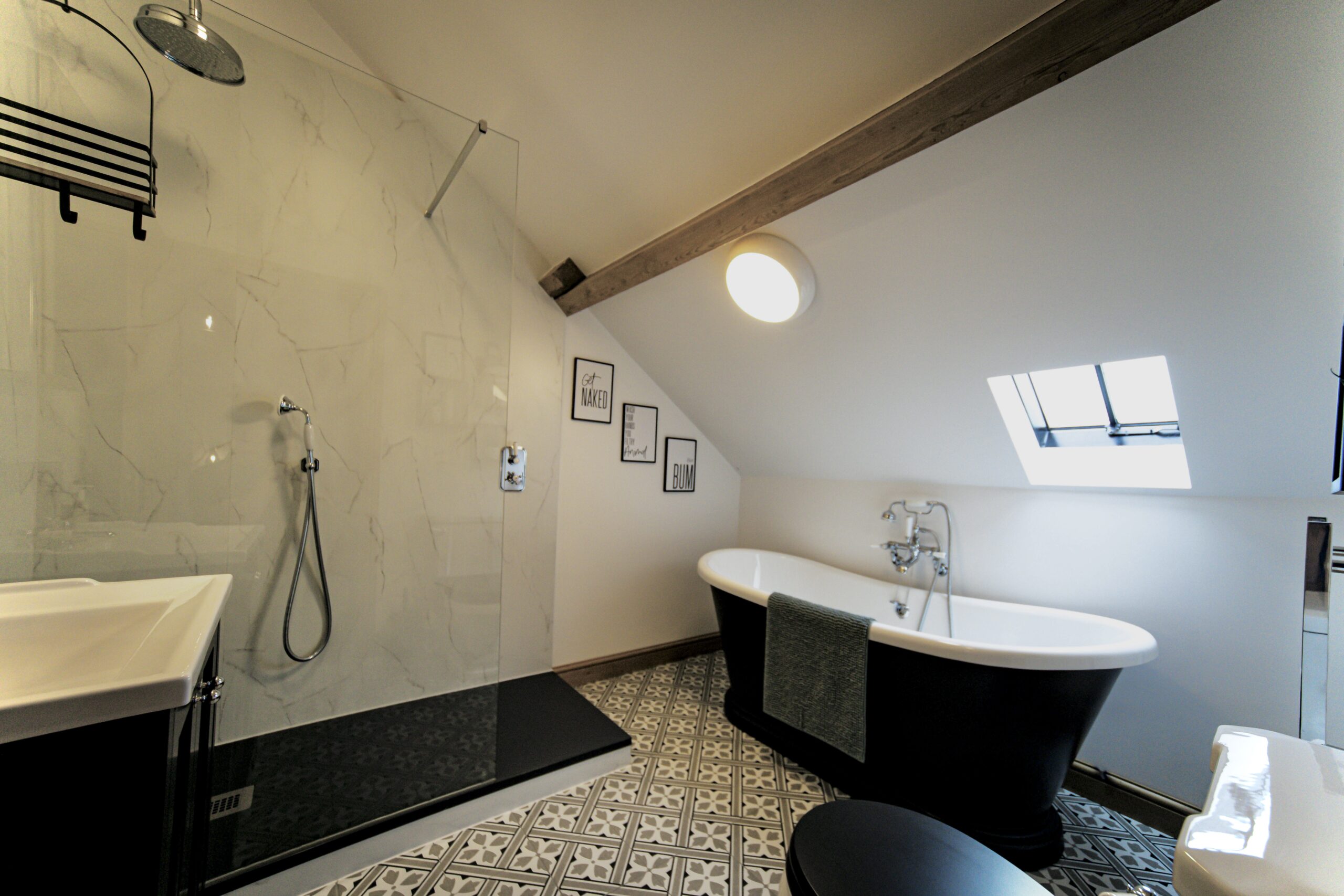 2 walk in showers and 1 bath.